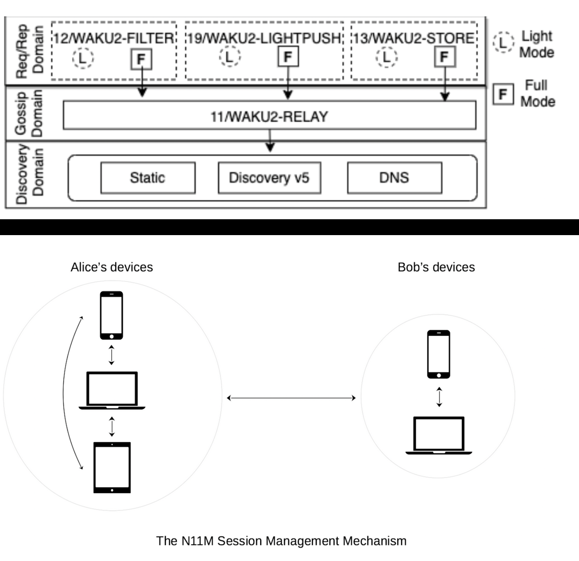 On the payload layer, we provide support for Noise handshakes/key-exchanges. This means that as a developers, you can get end-to-end encryption and expected guarantees out of the box. We have support for setting up a secure channel from scratch, and all of this paves the way for providing Signal's Double Ratchet at the protocol level much easier. We also have experimental support for multi-device usage. Similar features have existed in for example the Status app for a while, but with this we make it easier for any platform using Waku to use it.